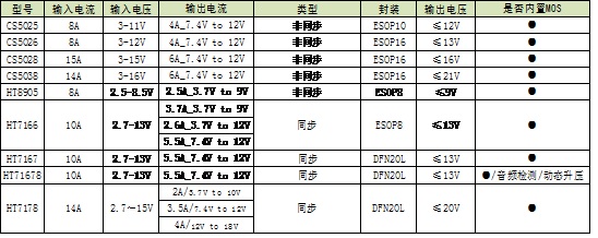DC-DC升壓是很多電子產(chǎn)品常用的電路。隨著集成電路技術(shù)的發(fā)展,大電流,大壓差,DC-DC升壓IC也很成熟。HT8905是一款高效的非同步DC-DC升壓轉(zhuǎn)換器。內(nèi)部集成8A電流MOS管,輸出電壓可調(diào)最高9V,輸入電壓最低2.5V,效率87%以上。SOP8封裝外圍簡單,MOS限流值可調(diào),調(diào)試方便,應用廣泛。