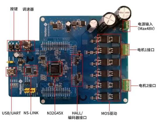 為方便用戶評估,國民技術(shù)提供基于N32G455控制芯片的電機評估板,該評估板由相互分離的驅(qū)動板(包含雙電阻雙FOC驅(qū)動板、單電阻雙FOC驅(qū)動板)和控制板組成,用戶可以自由組合出相應(yīng)的電機驗證平臺,該開發(fā)套件支持無感FOC應(yīng)用評估、HALL位置檢測FOC應(yīng)用評估、編碼器位置檢測FOC應(yīng)用評估。