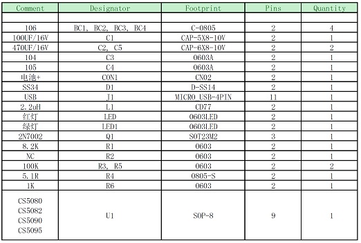 (5). CS5080_ CS5082_ CS5090_ CS5095 DEMO板物料清單