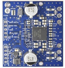 It contains a variety of digital/analog input, output and set-up/selection features. It also contains one on-board power supply (5 V buck converter), so only one external power supply (PVDD) is necessary.