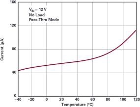 圖 6.LT8210 在直通區(qū)域內(nèi)具有超低靜態(tài)電流。