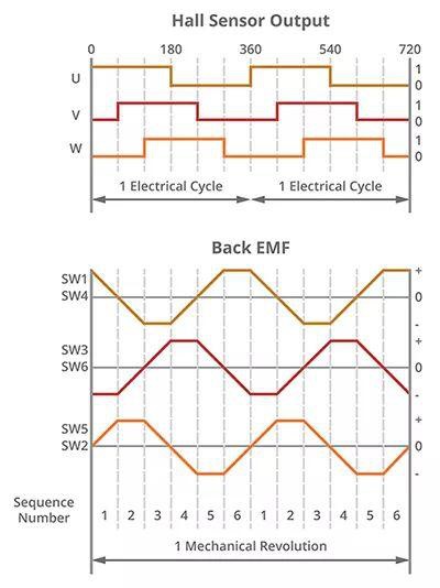 其中霍爾效應(yīng)傳感器用于電機(jī)換向,而編碼器則用于更加精確地追蹤位置、旋轉(zhuǎn)、速度和方向。由于霍爾效應(yīng)傳感器僅在每個霍爾狀態(tài)變化時提供新的位置信息,所以其精度只達(dá)到每一電力循環(huán)六個狀態(tài);