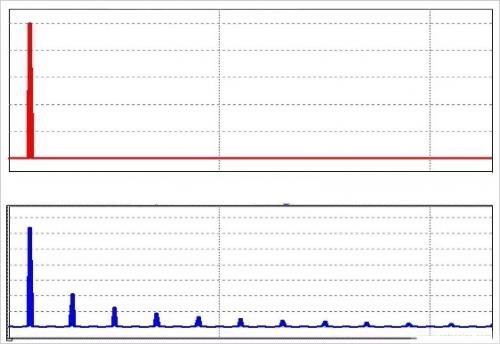 正弦波(頂部)和方波(底部)的頻域表示