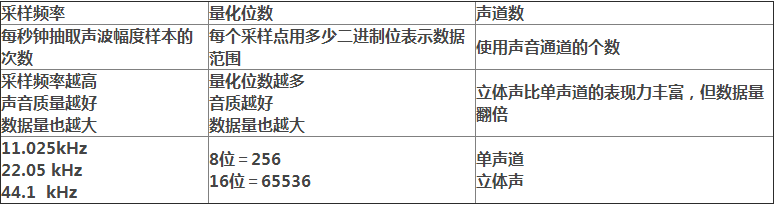 音頻數(shù)據(jù)量=采樣頻率&TImes;量化位數(shù)&TImes;聲道數(shù)/8(字節(jié)/秒)