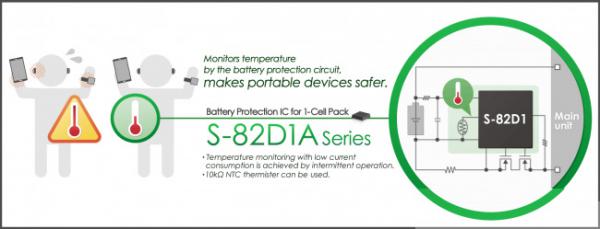 新的S-82D1A系列是單節(jié)鋰離子電池保護(hù)IC,可提供:(1)溫度保護(hù),以及常見的過充、過放和過流保護(hù)功能。其溫度保護(hù)功能可監(jiān)控溫度的上升和下降,以便于電路配置,從而提供更高的安全性。(2)充放電控制功能可以使用外部信號來阻止電池組的充放電。(3)過充檢測電壓的精度高達(dá)±15mV,而工作和保護(hù)過程中的電流消耗最大為5μA,屬于業(yè)界頂級水平。