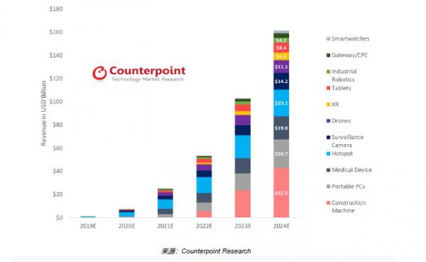 圖4:主要垂直領(lǐng)域的5G收入預(yù)測(來源:Counterpoint Research)