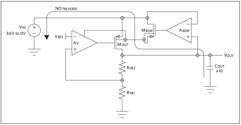 線性穩(wěn)壓器的輸出調(diào)整管大多包含體二極管,該二極管可防止輸出比輸入高出 0.7V 以上。大多數(shù)情況下,該二極管不是問題,但在兩種情況下會引起麻煩。