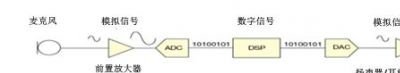 如圖1所示,傳統(tǒng)的音頻信號鏈中有麥克風、前置放大器、模/數(shù)轉換器(ADC)、數(shù)/模轉換器(DAC)、輸出放大器,以及揚聲器,它們之間使用模擬信號連接。但是,由于模擬電路被推到了信號鏈的邊緣,信號鏈中各集成電路間將出現(xiàn)更多數(shù)字接口。DSP通常是數(shù)字連接,換能器、放大器一般而言只有模擬接口,但現(xiàn)在也正在包含數(shù)字接口的功能。