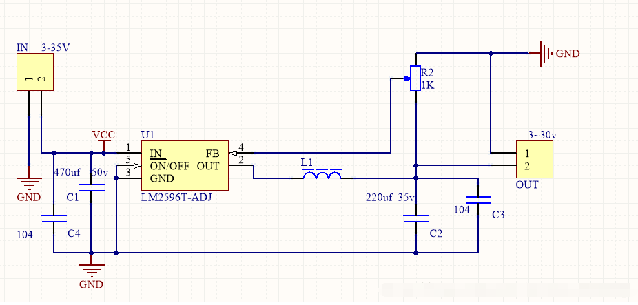 順帶介紹一下LM2596.LM2596系列是德州儀器(TI)生產(chǎn)的3A電流輸出降壓開關(guān)型集成穩(wěn)壓芯片,它內(nèi)含固定頻率振蕩器(150KHZ)和基準(zhǔn)穩(wěn)壓器(1.23v),并具有完善的保護電路、電流限制、熱關(guān)斷電路等。利用該器件只需極少的外圍器件便可構(gòu)成高效穩(wěn)壓電路。提供的有:3.3V、5V、12V及可調(diào)(-ADJ)等多個電壓檔次產(chǎn)品。有關(guān)電路直接下載datasheet即可知道。我自己用過的電路如下: