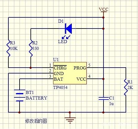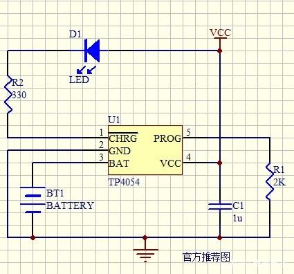 最近在使用TP4054鋰電充電芯片時(shí)遇到一個(gè)奇怪的問(wèn)題,充滿(mǎn)電后指赤燈有時(shí)會(huì)滅有時(shí)不會(huì)滅只是亮度降低,讓我很迷惑,后面經(jīng)過(guò)分析與測(cè)量最終解決此問(wèn)題。造面此問(wèn)題的原因是此芯片的CHRG(引腳1)腳在充滿(mǎn)電時(shí)為高阻狀態(tài),但仍有極奇微弱的電流,這樣就會(huì)造成一些高亮的LED仍能點(diǎn)亮。后面在此引腳上加一上拉電阻后完美解決問(wèn)題,現(xiàn)附原理圖如下: