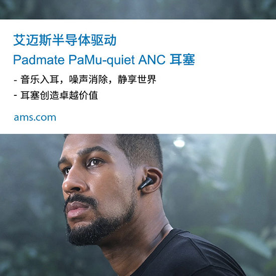 艾邁斯半導(dǎo)體的先進(jìn)主動降噪技術(shù)為Padmate新款PaMu Quiet耳塞提供核心賣點(diǎn)