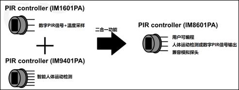 圖1 M8601 可編程數(shù)PIR信號調(diào)理芯片, 結(jié)合了數(shù)字PIR芯片和智能人體運動檢測功能