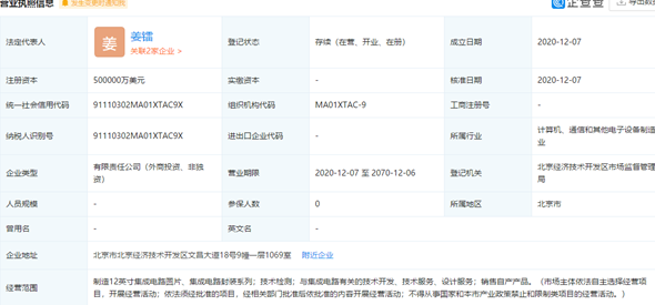 據(jù)企查查信息顯示,日前中芯國(guó)際正式成立了中芯京城集成電路制造(北京)有限公司,這個(gè)企業(yè)就是12月4日中芯國(guó)際公告的50億美金投資的公司。