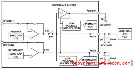 圖2.AD7284內(nèi)部基準(zhǔn)和選擇的外部基準(zhǔn)圖
