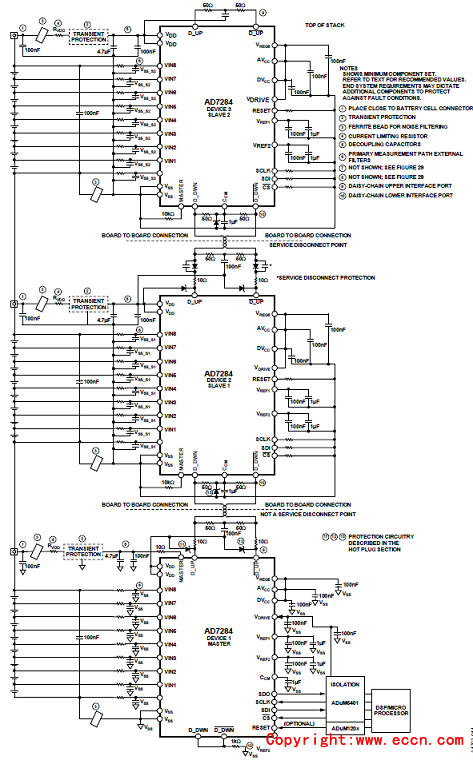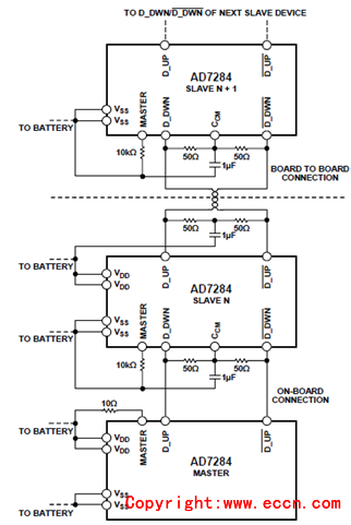 圖5.AD7284三個(gè)器件的菊花鏈配置圖
