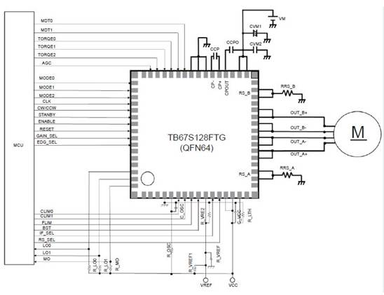 圖2:TB67S128電機(jī)驅(qū)動(dòng)器的典型應(yīng)用(來源:東芝)