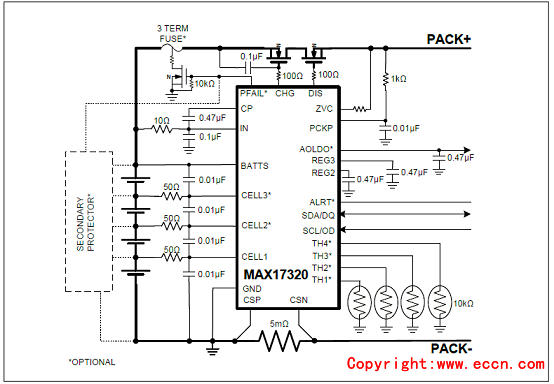 圖4.MAX17320帶保險(xiǎn)絲的應(yīng)用電路圖