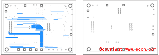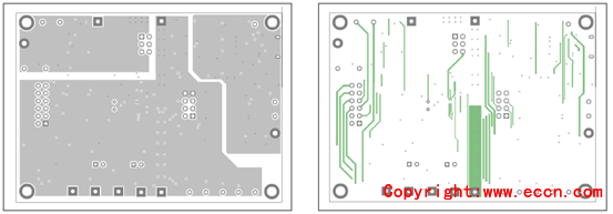圖10.評估板MAX17320X EVK PCB設(shè)計(jì)圖:左:層2;右:層3