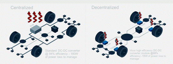 Vicor 全球汽車業(yè)務(wù)開(kāi)發(fā)副總裁 Patrick Wadden 認(rèn)為:“使用高密度積木式設(shè)計(jì)的 48V 分布式電源架構(gòu)才是更具優(yōu)勢(shì)的做法。而且,不管是混動(dòng)還是純電動(dòng)車都可以使用這樣的方法!