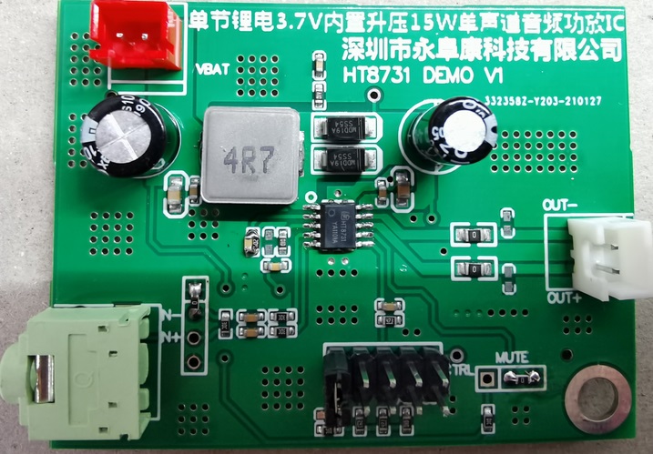 目前,戶外藍(lán)牙音箱(包括手提音箱及拉桿音箱等產(chǎn)品類型)深受消費(fèi)者的喜愛,其便攜性既能滿足家用,也能滿足一定時(shí)間內(nèi)的戶外使用,其音質(zhì)效果優(yōu)于一般的小藍(lán)牙音箱,適合戶外活動(dòng)廣場(chǎng)舞等場(chǎng)合。因其體積重量要求的要求決定了供電是以單節(jié)18650鋰電池為供電電源。深圳市永阜康科技有限公司最新推廣的內(nèi)置自適應(yīng)動(dòng)態(tài)升壓15W單聲道F類功放IC-HT8731,該芯片音質(zhì)表現(xiàn)高音通透、低音震撼、人聲甜美,能完美實(shí)現(xiàn)3.7V單節(jié)鋰電供電音箱產(chǎn)品的性能升級(jí)迭代。