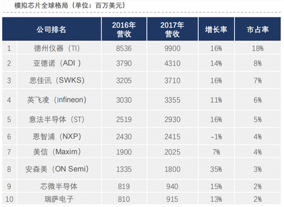 d.意法半導(dǎo)體:專注傳感器與功率芯片、汽車芯片和嵌入式處理解決方案;e.德州儀器(TI):全球模擬集成電路市場的領(lǐng)導(dǎo)地位。