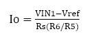 由于Rs(R6/R5)是固定值,因此可以通過調(diào)節(jié)VIN1將輸出電流Io設(shè)置為所需值。