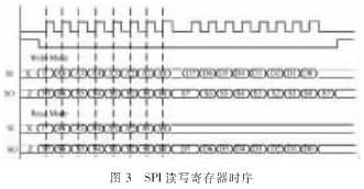 CC2500是一種單片2.4 GHz收發(fā)器,通過SPI接口與MCU建立聯(lián)系,MCU在開始要完成對(duì)CC2500寄存器的配置,其讀寫時(shí)序如圖3所示。首先設(shè)置IOCFG2,IOCFG0.TX發(fā)送字節(jié)個(gè)數(shù),包長(zhǎng)度,發(fā)射功率等寄存器,完成對(duì)CC2500的初始化。