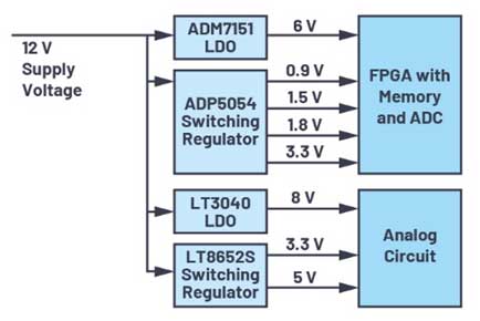 當(dāng)今的電子應(yīng)用常常需要不止一個(gè)5 V或3.3 V電源電壓。10個(gè)、20個(gè)或更多的電壓并不罕見。此外,有的電壓域具有相同的電壓電平,但必須作為單獨(dú)的域產(chǎn)生——也就是說,這些電壓必須產(chǎn)生兩次。一個(gè)例子是提供兩個(gè)相同的電壓來分別為模擬和數(shù)字負(fù)載供電。這種分離可防止相互干擾,并在不同時(shí)間為不同負(fù)載提供能量。
