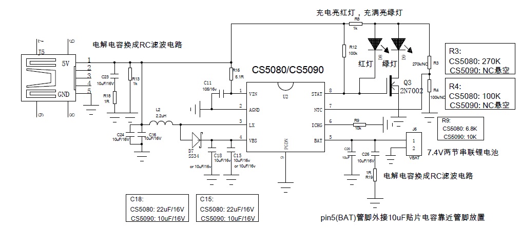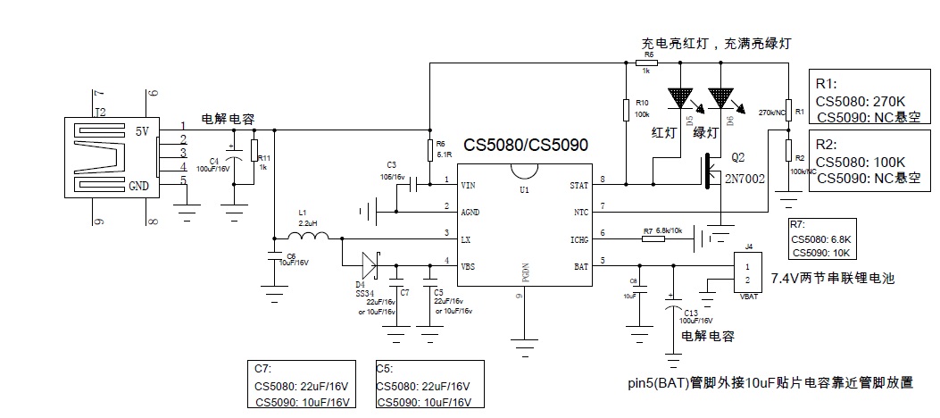 5V USB輸入雙節(jié)鋰電升壓型充電管理芯片CS5080_CS5090共layout設計參考