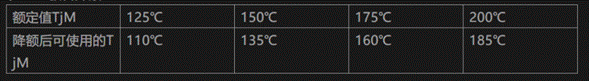降額可以提高產(chǎn)品可靠性,延長使用壽命,根據(jù)溫度降低10℃壽命增加一倍的理論,下面列出了不同額定結(jié)溫的管子最小降額結(jié)溫數(shù)據(jù)。