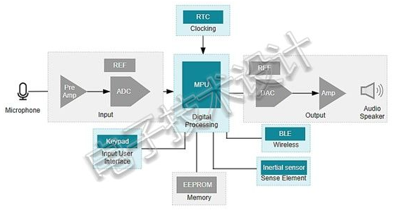 圖1:方塊圖中顯示聽戴式裝置設(shè)計的基本建構(gòu)模組。(來源:TexasInstruments)