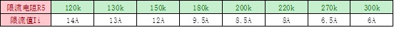 (4). HT7179 pin13(ILIM)對地限流電阻R5對應的限流值(峰值)舉例: