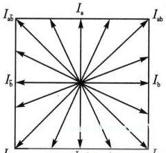 一般的細(xì)分方法只改變某一相的電流,另一相電流保持不變。如圖所示,在O°~45°,Ia保持不變,Ib由O逐級變大;在45°~90°,Ib 保持不變,Ia由額定值逐級變?yōu)?。該方法的優(yōu)點(diǎn)是控制較為簡單,在硬件上容易實(shí)現(xiàn);但由圖5所示的電流矢量合成圖可知,所合成的矢量幅值是不斷變化的, 輸出力矩也跟著不斷變化,從而引起滯后角的不斷變化。當(dāng)細(xì)分?jǐn)?shù)很大、微步距角非常小時(shí),滯后角變化的差值已大于所要求細(xì)分的微步距角,使得細(xì)分實(shí)際上失去 了意義。