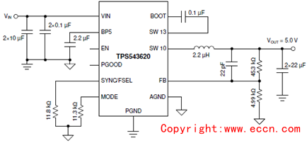 TPS543620 18V 6A同步SWIFT降壓轉(zhuǎn)換器解決方案
