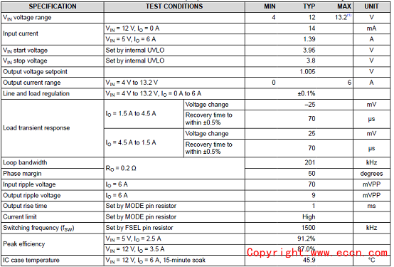 評估模塊TPS543620EVM小型(U1)性能特性: