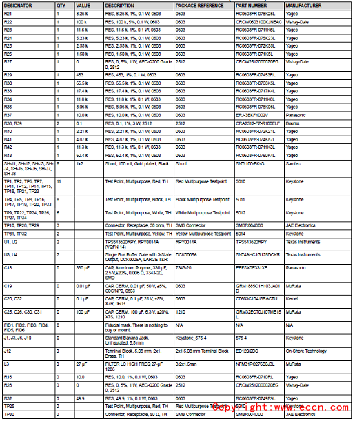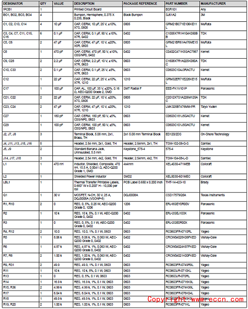 TI公司的TPS543620是高效率4V-18V輸入6A同步SWIFT降壓轉(zhuǎn)換器,具有內(nèi)部補償?shù)墓潭l率先進電流模式控制,開關(guān)頻率高達2.2MHz.器件是小型2.5-mm x 3-mm HotRod VQFN封裝,和高效率和高昂頻率一起,使它最適合用在小型解決方案的地方.固定頻率控制器工作從500 kHz 到 2.2 MHz,采用SYNC引腳能和外時鐘同步.其它特性還包括高精度基準電壓,可選擇軟起動時間,單調(diào)起動進入預(yù)偏壓輸出,可選擇電流限制,通過EN引腳可調(diào)UVLO和全套的故障保護.器件集成了25-mΩ和6.5-mΩ MOSFET,輸入電壓范圍4V到18V,輸出電壓0.5V到5.5V,三種可選擇PWM斜率,以優(yōu)化控制回路性能,五種可選擇的開關(guān)頻率:500 kHz,750 kHz, 1 MHz, 1.5 MHz和2.2 MHz.整個溫度范圍內(nèi)的確基準電壓精度為0.5-V, ±0.5%.可選擇的軟起動時間為0.5 ms, 1 ms, 2 ms和4 ms.可選擇限流以支持6A和3A工作,提供輸出過壓保護,輸出欠壓保護,輸入欠壓保護,過流保護和超溫保護.引腳和TPS543820和TPS543320兼容,結(jié)工作溫度–40C到150C,采用2.5-mm × 3-mm 14引腳VQFN-HR封裝,0.5-mm間距.本文介紹了TPS543620主要特性,功能框圖和五種應(yīng)用電路圖,以及SWIFT™降壓轉(zhuǎn)換器評估模塊TPS543620EVM主要特性,電路圖,材料清單和PCB設(shè)計圖.