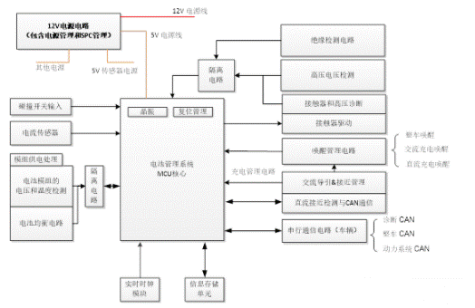 5)電源管理電路和 EMC 抑制:電池管理系統(tǒng)從電池模組和 12V 電池上驅(qū)電,通過合理的保護電路來管控不同節(jié)點的電源情況。