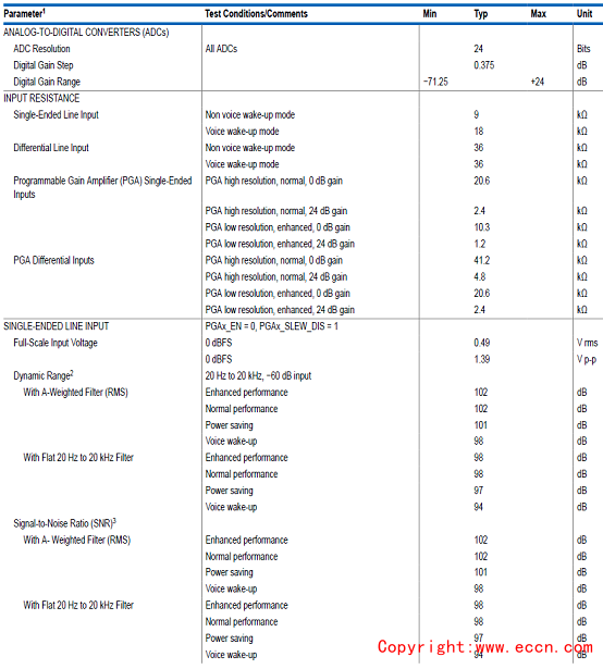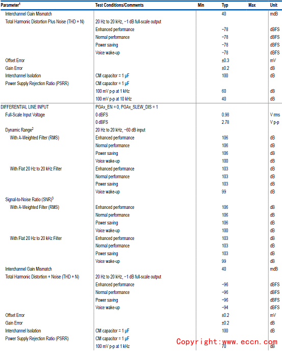 ► 106 dB SNR (signal through ADC with A-weighted filter)