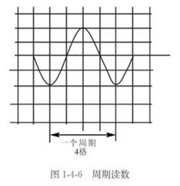 (2) 時間的測量和頻率的測量在此僅介紹一般的周期測量方法。1) 測量前先將示波器的水平微調旋鈕順時針旋到底,使掃描速度被校準到與面板上TIME/DIV指示的一致。2) 接入被測信號,將圖形移至熒光屏中心,如圖1-4-6所示。