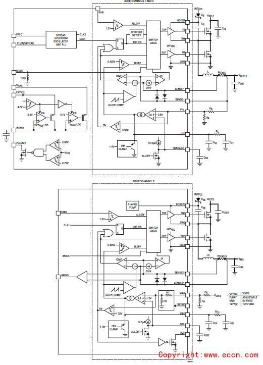 LTC7818三路輸出(降壓/降壓/升壓)同步DC/DC開關(guān)穩(wěn)壓器控制方案