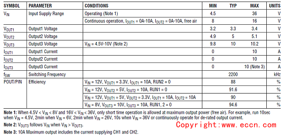 演示板DC2855A主要指標: