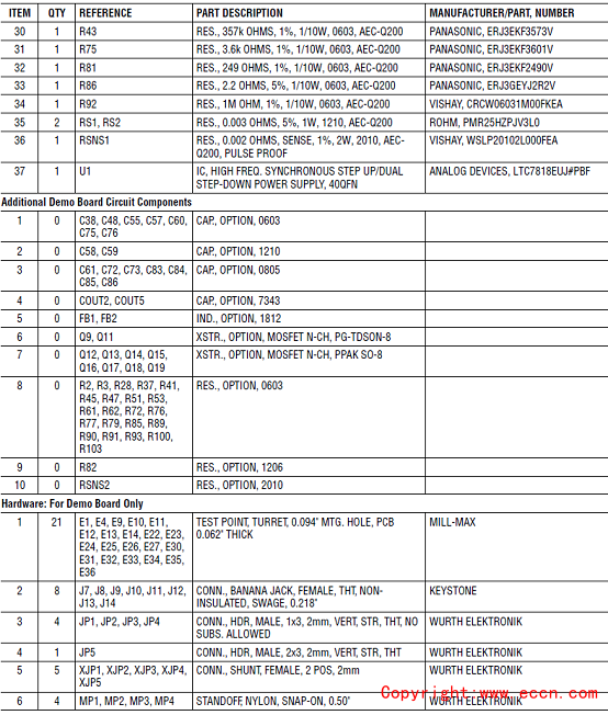 演示板DC2855A材料清單: