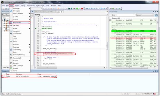 Cortex-M,有6到8個(gè)斷點(diǎn),但開發(fā)人員也可以保存斷點(diǎn)位置并在需要時(shí)禁用和啟用斷點(diǎn)。只需要選擇顯示View ->Breakpoints