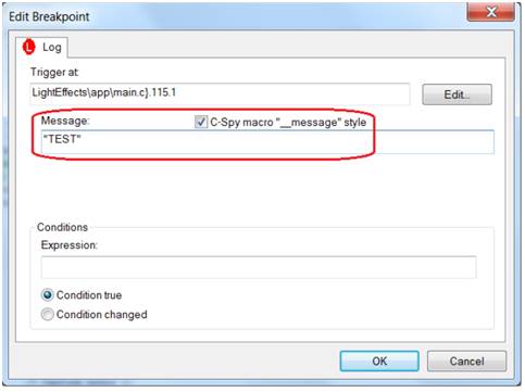 當(dāng)需要在一個(gè)中斷例程內(nèi)設(shè)置斷點(diǎn)時(shí),這非常有用。如果沒有條件,就不可能調(diào)試應(yīng)用,因?yàn)槌绦驅(qū)⒁恢蓖V埂J褂脴?biāo)志或變量作為條件可以簡化操作。此外,還可以進(jìn)一步使用跳過計(jì)數(shù)器和條件檢查,如true或changed。