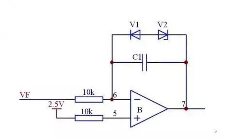 在下圖中,1M電阻就起到滯環(huán)的作用,如果沒有1M電阻,很明顯,VF電壓達(dá)到2.5V運(yùn)放輸出低電平,低于2.5V,運(yùn)放輸出高電平。增加1M電阻后,在運(yùn)放輸出低電平時(shí),6腳電平為0.7