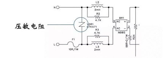 大功率設(shè)備斷開或接入電網(wǎng)時,會使得電網(wǎng)電壓上升或跌落。為了保護電源,有時會使用一個壓敏電阻接在輸入端。
