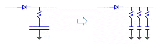 多個電容并聯(lián)的方法缺點是占用大量的空間,在小體積電源中應(yīng)用受限,所以有時會用陶瓷和電解電容并聯(lián)的方法,甚至用一種多層陶瓷電容替代多個陶瓷電容。