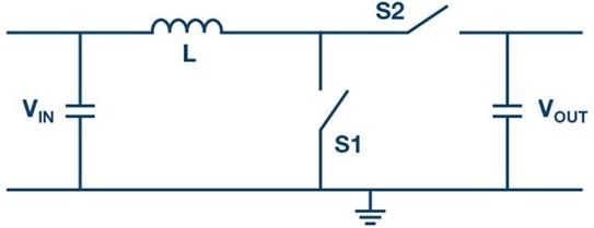 如果需要從低電壓生成高電壓,可采用升壓轉(zhuǎn)換器。它是三種基本開(kāi)關(guān)穩(wěn)壓器拓?fù)渲械囊环N,僅需兩個(gè)開(kāi)關(guān)、一個(gè)電感以及輸入和輸出電容。除了升壓轉(zhuǎn)換器以外,其他基本拓?fù)浣Y(jié)構(gòu)還包括降壓轉(zhuǎn)換器和反相降壓-升壓轉(zhuǎn)換器。圖1顯示了升壓轉(zhuǎn)換器的原理圖。在導(dǎo)通期間,開(kāi)關(guān)S1閉合,電能存儲(chǔ)在線(xiàn)圈L中,電感電流隨輸入電壓與地電位之間的差值線(xiàn)性增加;也就是說(shuō),隨輸入電壓而增加,在關(guān)斷期間,當(dāng)S1開(kāi)啟且S2閉合時(shí),存儲(chǔ)在電感中的電能提供至輸出端。電感兩端的電壓在此時(shí)間段內(nèi)等于輸出電壓減去輸入電壓。