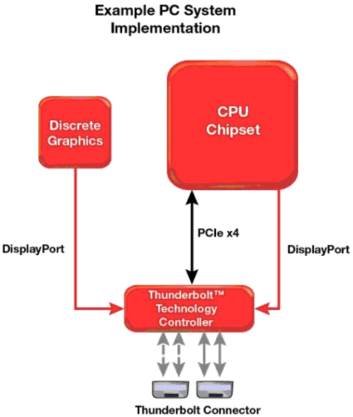 圖 1 PC 系統(tǒng) Thunderbolt™ 技術(shù)實(shí)現(xiàn)例子