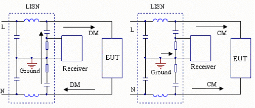 傳導(dǎo)干擾主要評估輸入和輸出線上流過的干擾噪聲。待測試的設(shè)備EUT通過阻抗匹配網(wǎng)絡(luò)LISN 連接到干凈的交流電源上。